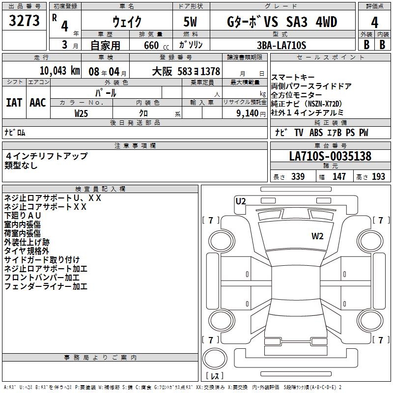 DAIHATSU WAKE G TURBO VS SA3 4WD - лот 3273