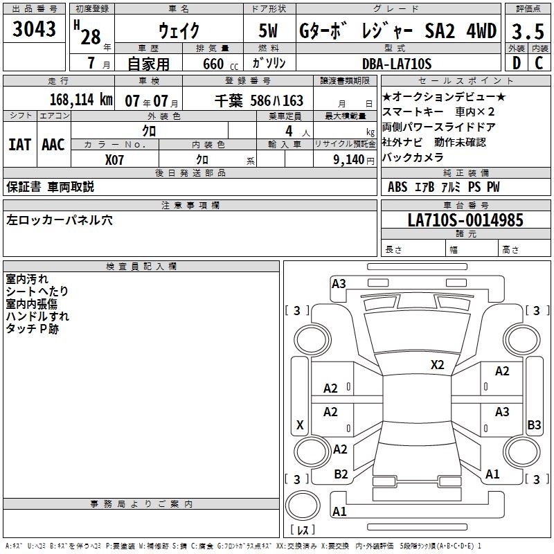 DAIHATSU WAKE G TURBO LEISURE SA2 4WD - лот 3043