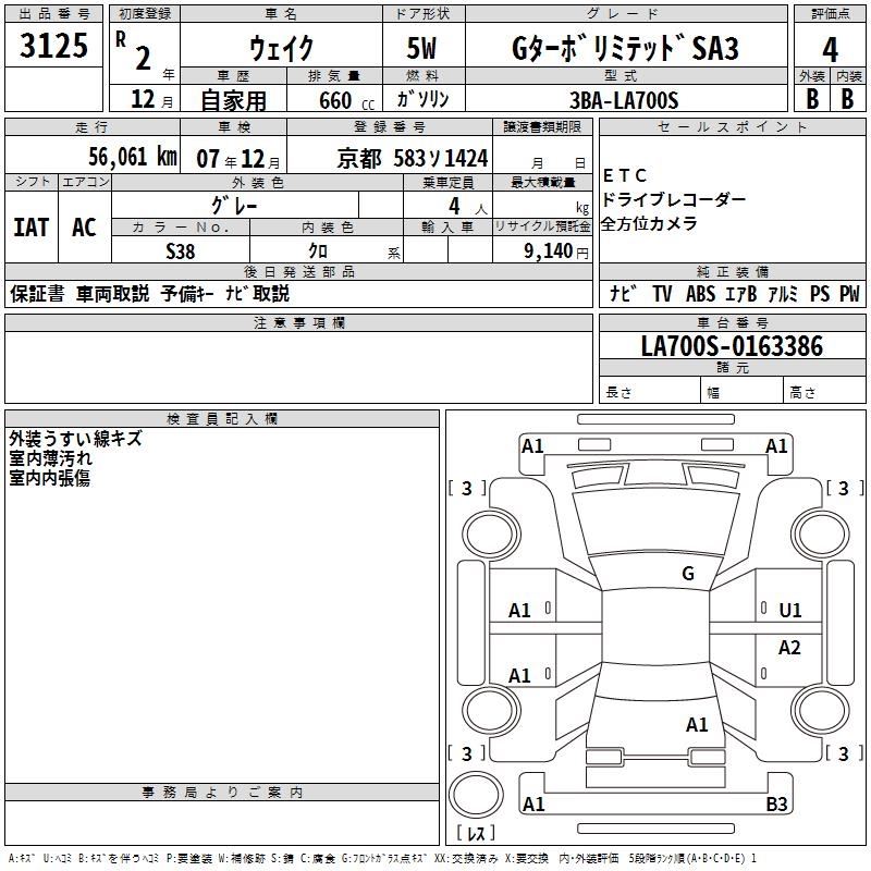 DAIHATSU WAKE G TURBO LIMITED SA3 - лот 3125