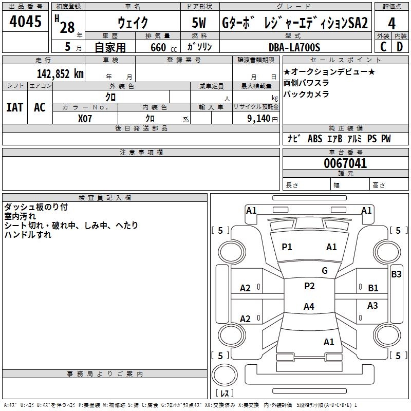 DAIHATSU WAKE G TURBO LEISURE ED SA2 - лот 4045