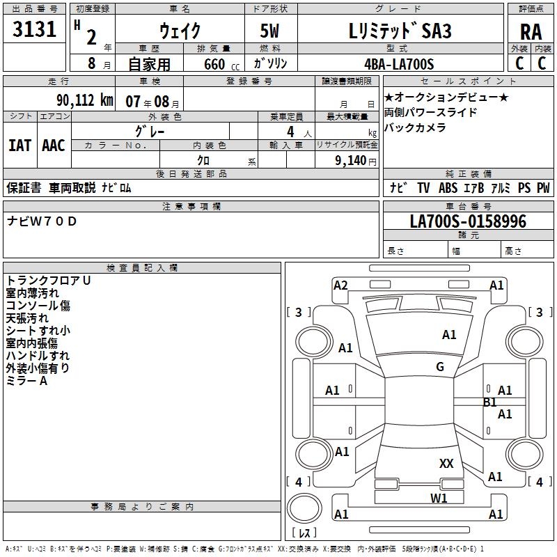 DAIHATSU WAKE L LIMITED SA3 - лот 3131