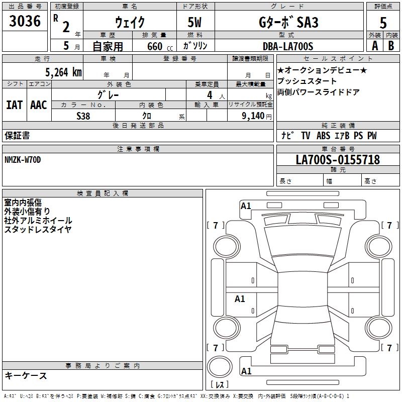 DAIHATSU WAKE G TURBO SA3 - лот 3036