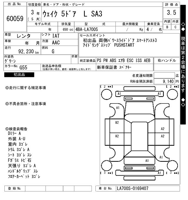 DAIHATSU WAKE L SA3 - лот 60059
