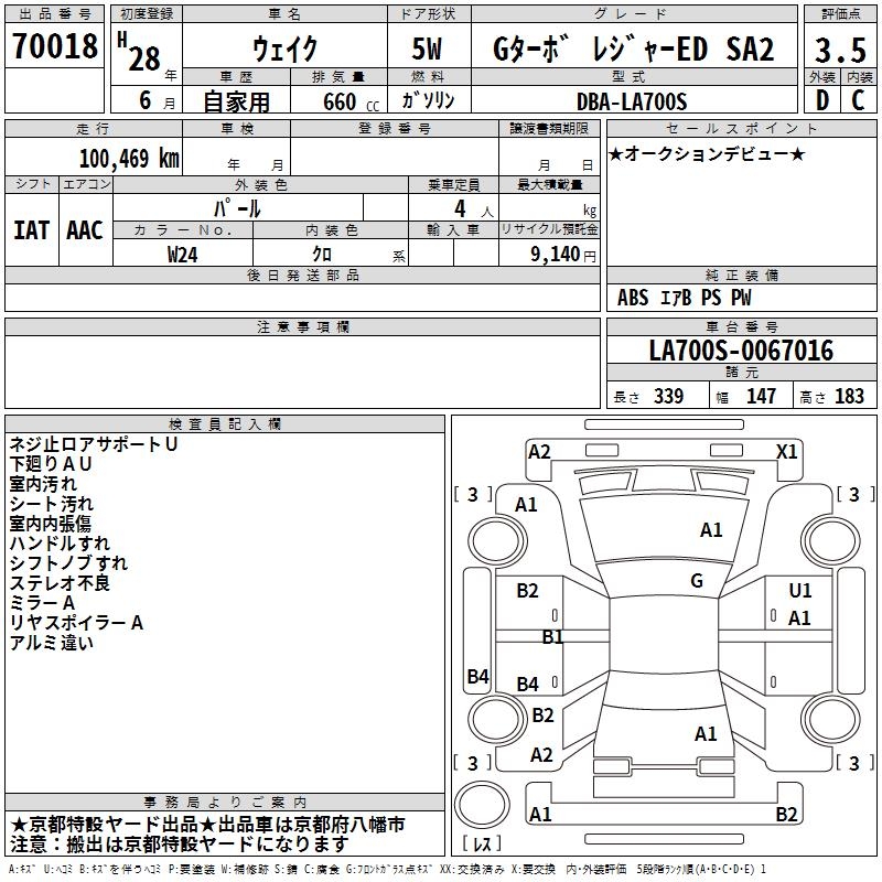 DAIHATSU WAKE G TURBO LEISURE ED SA2 - лот 70018