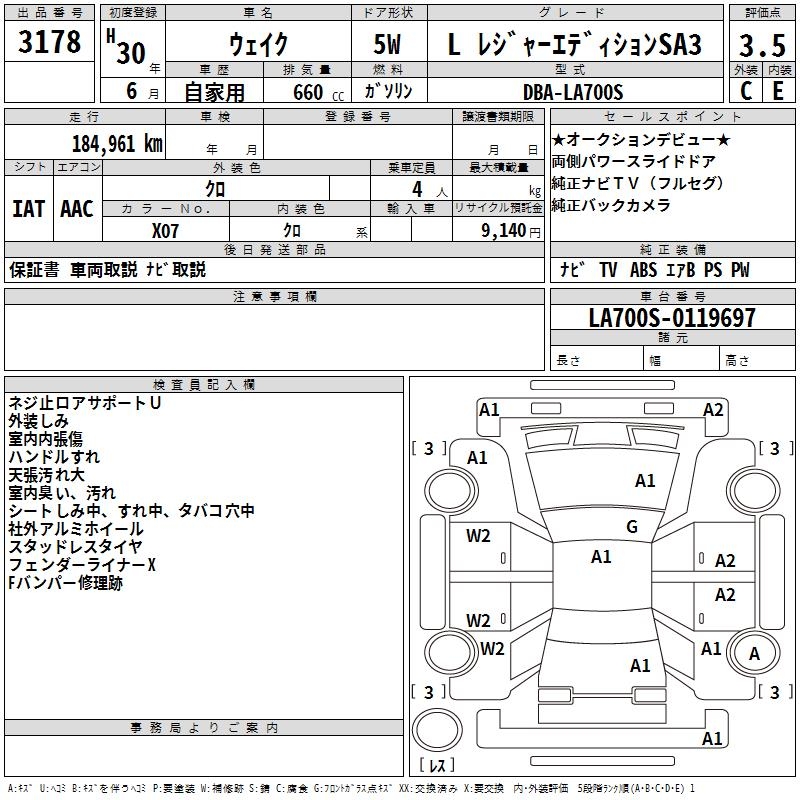 DAIHATSU WAKE L LEISURE EDITION SA3 - лот 3178