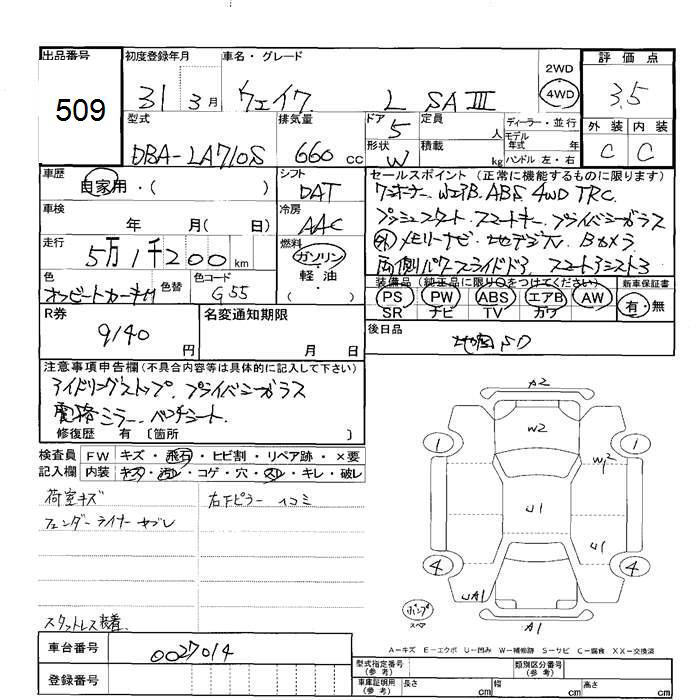 DAIHATSU WAKE 4WD L SA III - лот 509