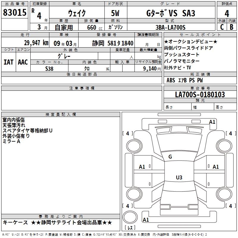 DAIHATSU WAKE G TURBO VS SA3 - лот 83015