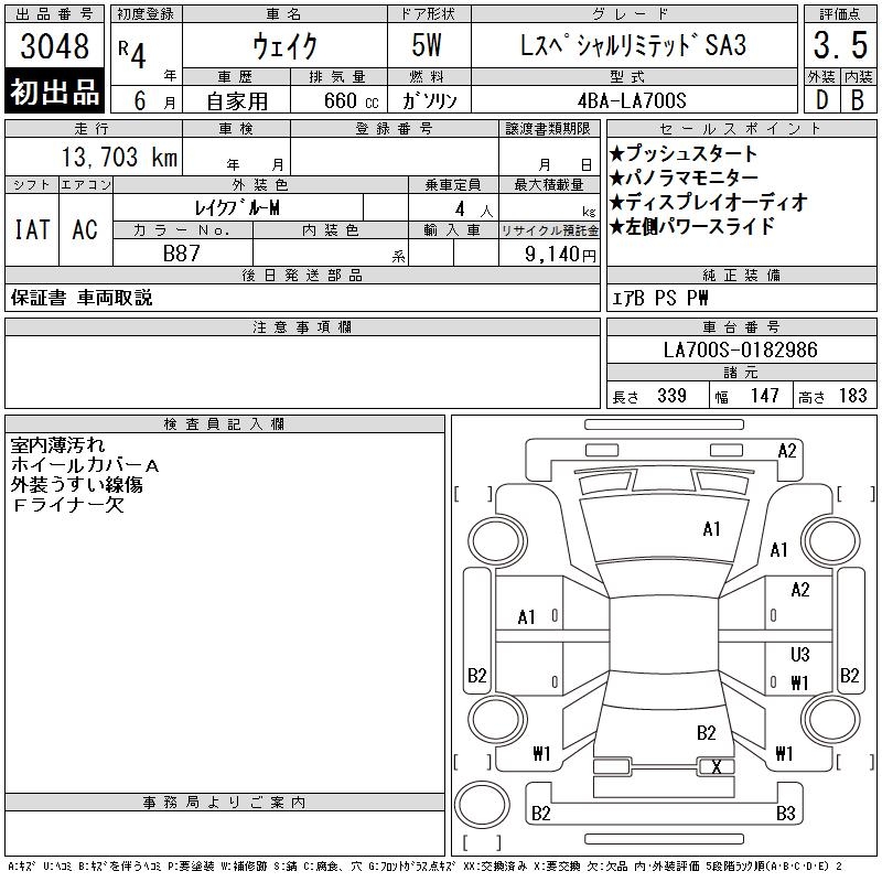 DAIHATSU WAKE L SPECIAL LIMITED SA3 - лот 3048