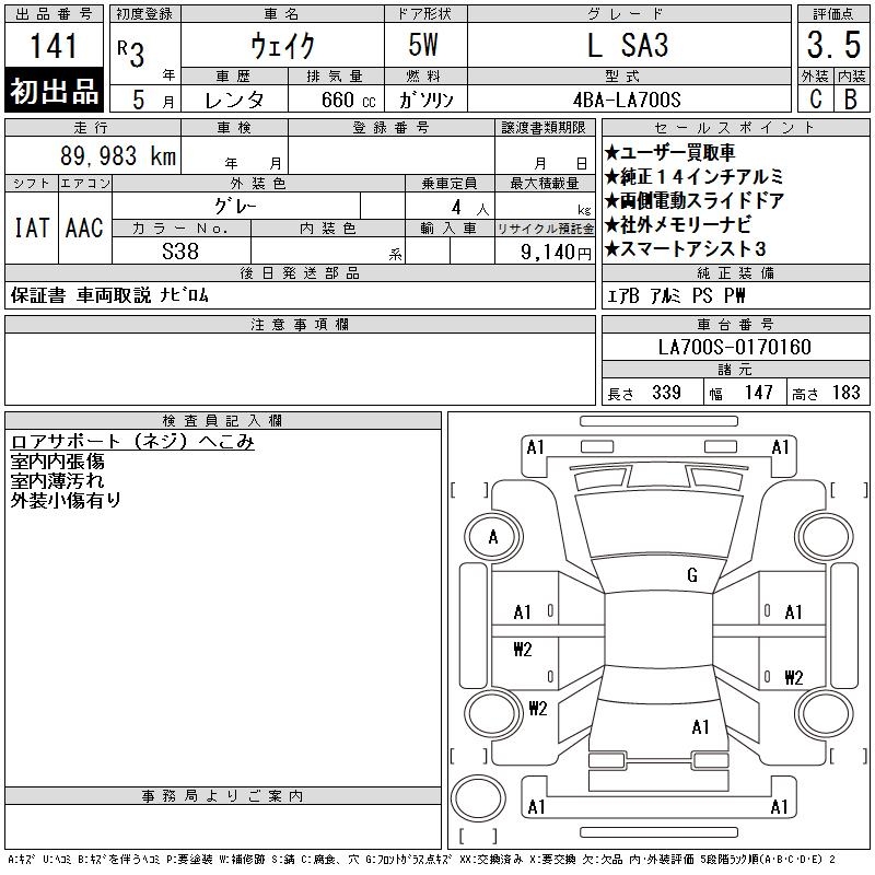 DAIHATSU WAKE L SA3 - лот 141