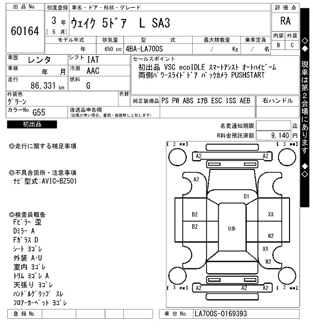 DAIHATSU WAKE L SA3 - лот 60164