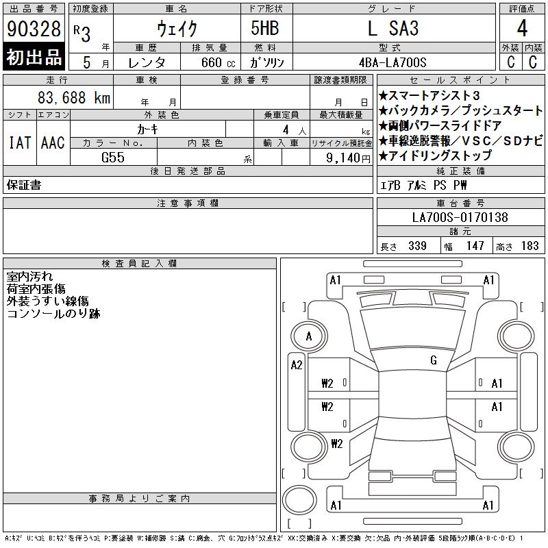 DAIHATSU WAKE L SA3 - лот 90328