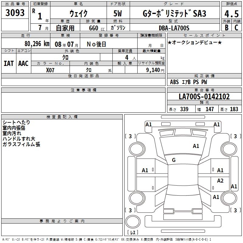 DAIHATSU WAKE G TURBO LIMITED SA3 - лот 3093