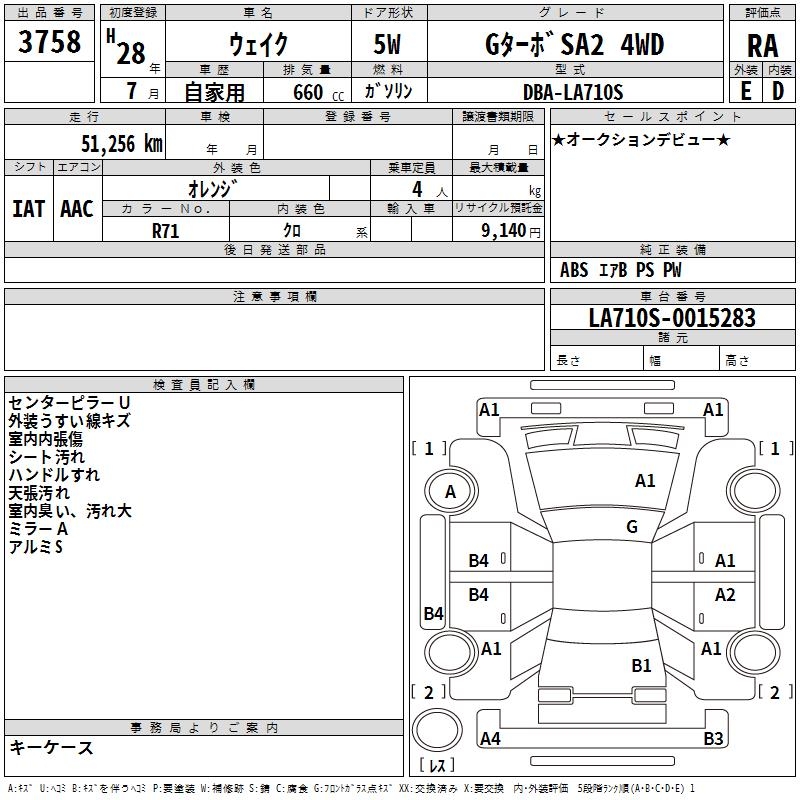 DAIHATSU WAKE G TURBO SA2 4WD - лот 3758