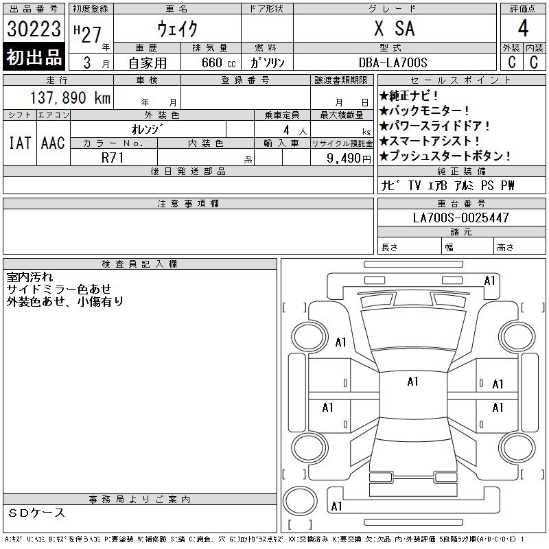 DAIHATSU WAKE X SA - лот 30223