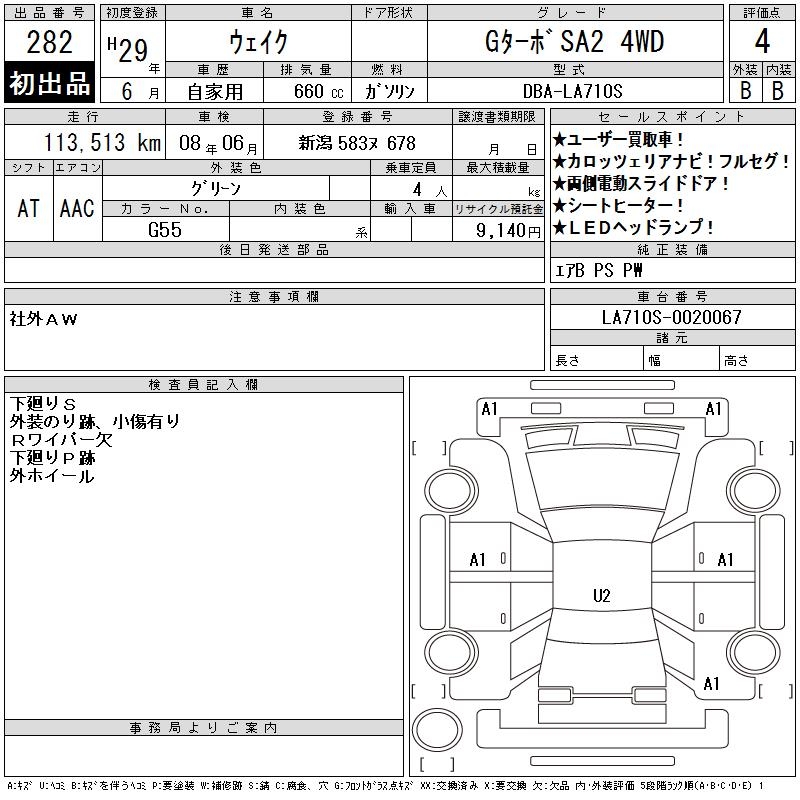 DAIHATSU WAKE G TURBO SA2 4WD - лот 282