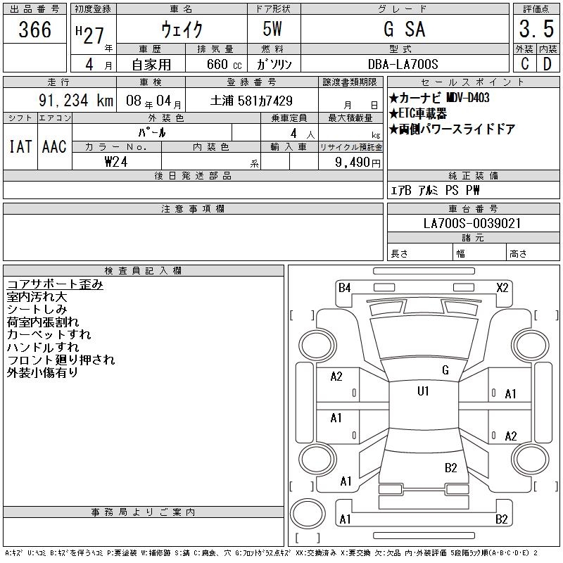 DAIHATSU WAKE G SA - лот 366