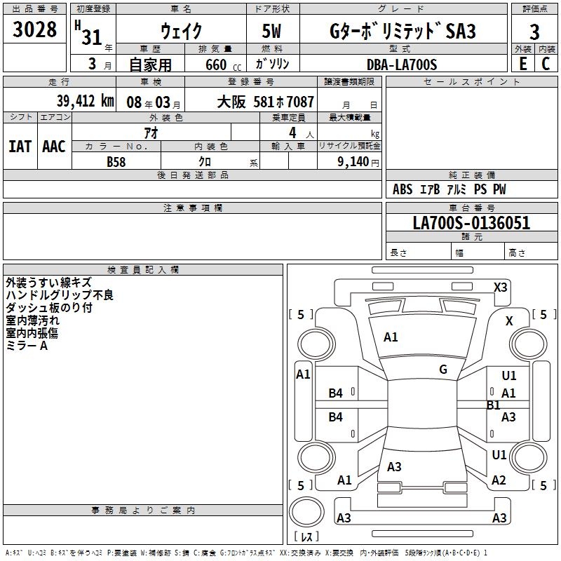 DAIHATSU WAKE G TURBO LIMITED SA3 - лот 3028