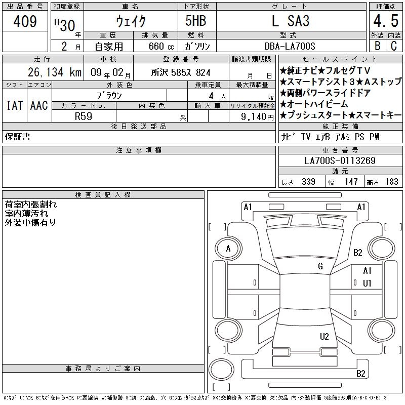 DAIHATSU WAKE L SA3 - лот 409