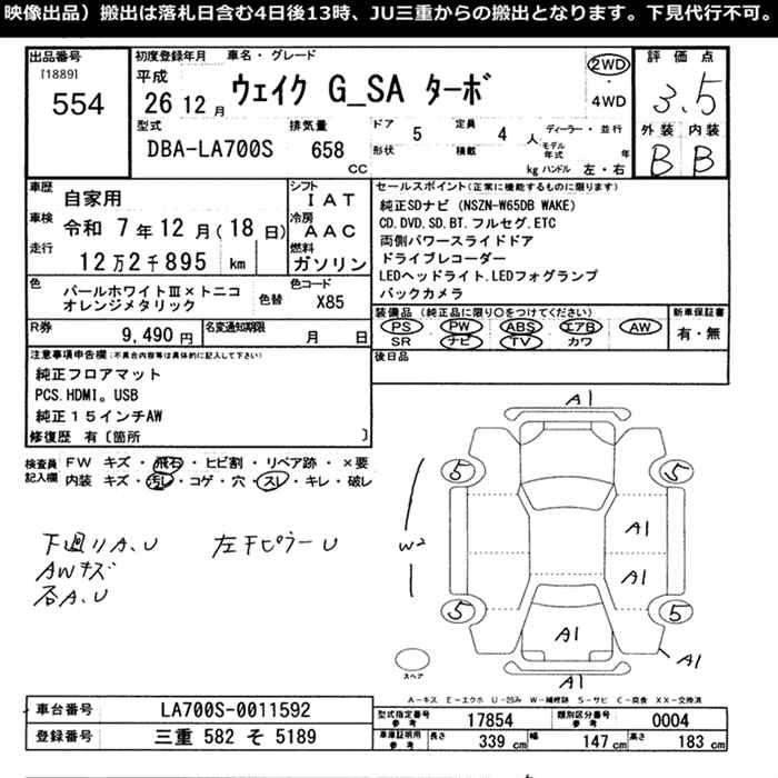 DAIHATSU WAKE G SA TURBO - лот 554