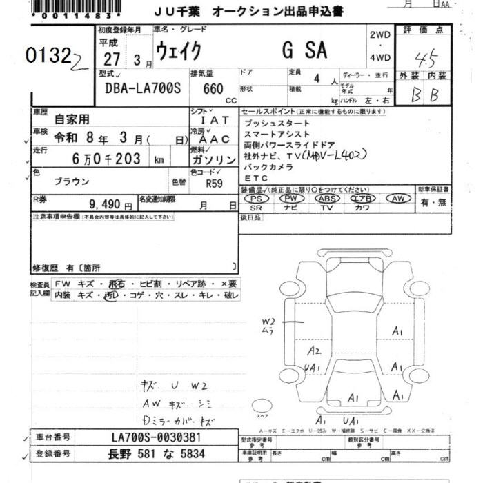 DAIHATSU WAKE G SA - лот 132