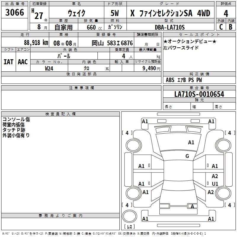 DAIHATSU WAKE XFA IN SELECTION SA 4WD - лот 3066