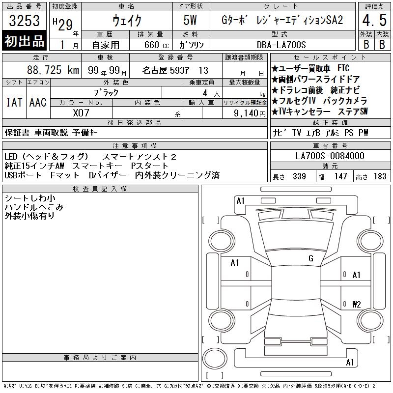 DAIHATSU WAKE G TURBO LEISURE ED SA2 - лот 3253