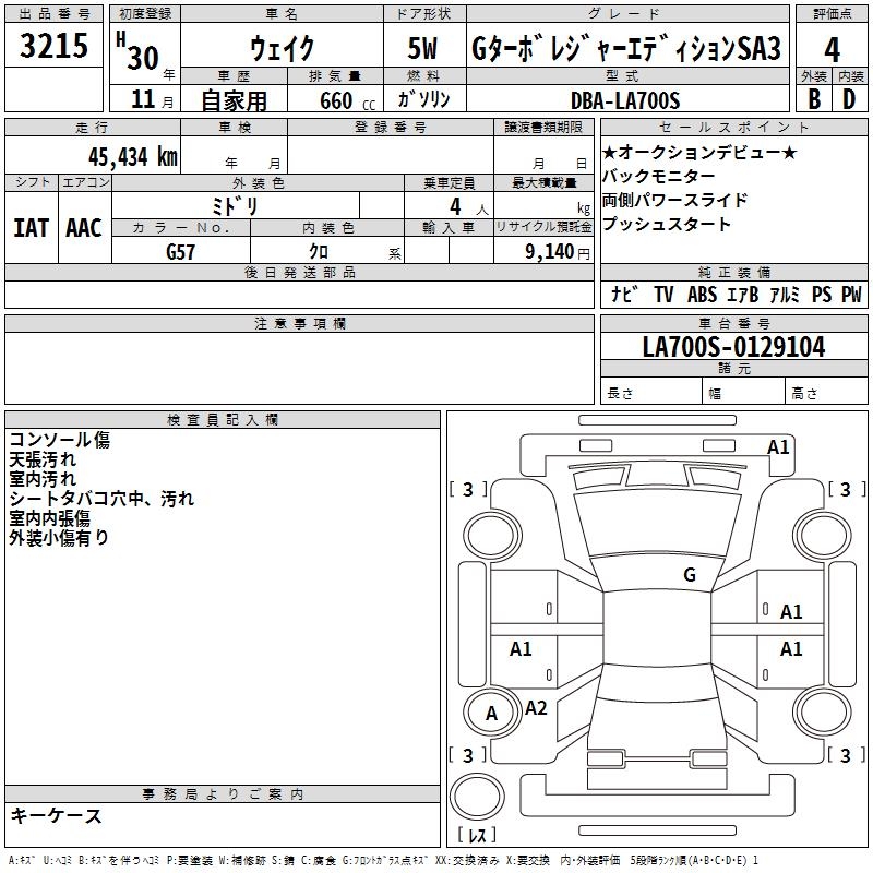 DAIHATSU WAKE G TURBO LEISURE EDITION SA3 - лот 3215