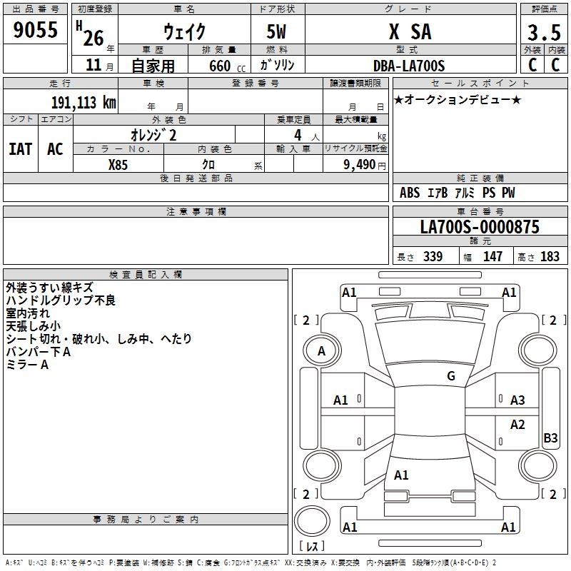 DAIHATSU WAKE X SA - лот 9055