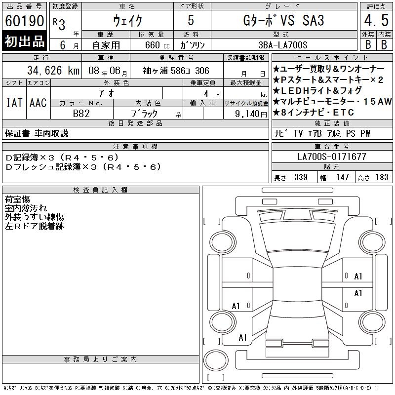 DAIHATSU WAKE G TURBO VS SA3 - лот 60190