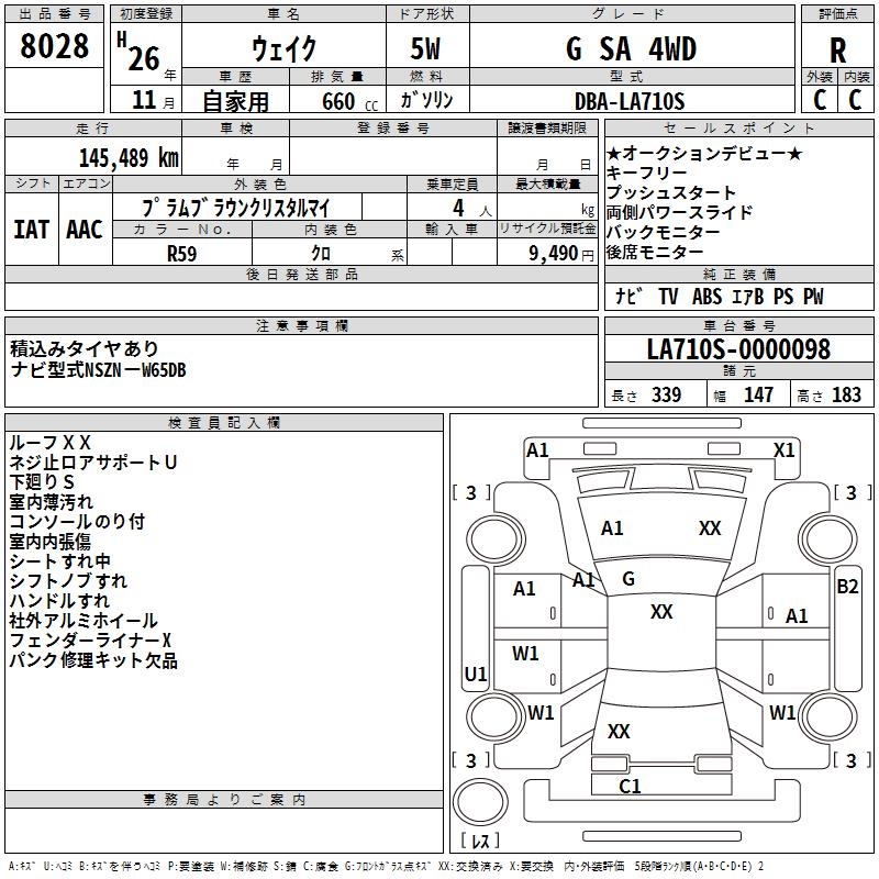 DAIHATSU WAKE G SA 4WD - лот 8028