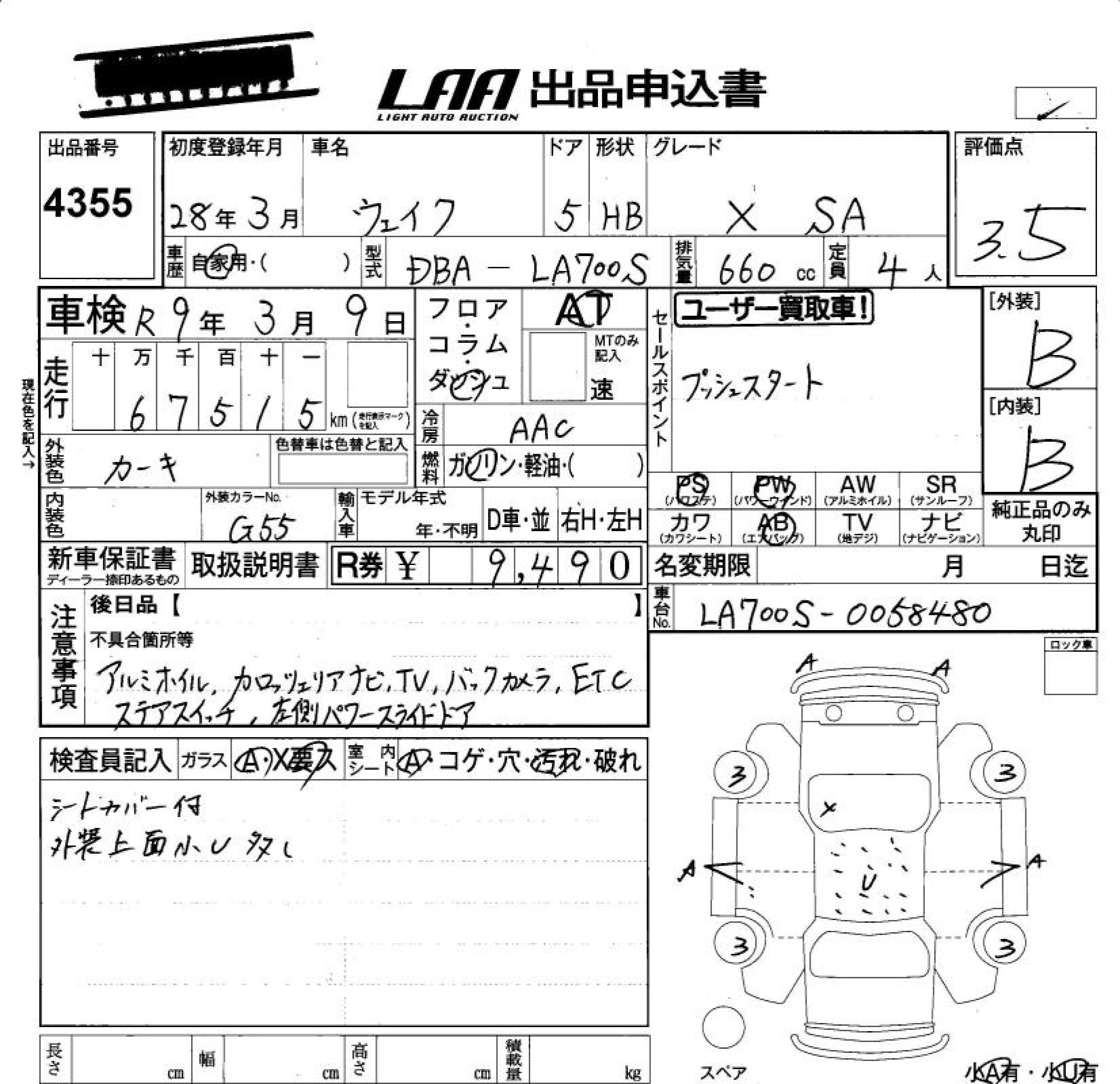 DAIHATSU WAKE X SA - лот 4355