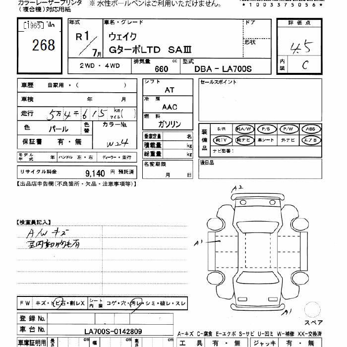 DAIHATSU WAKE G turbo LTD SA3 - лот 268