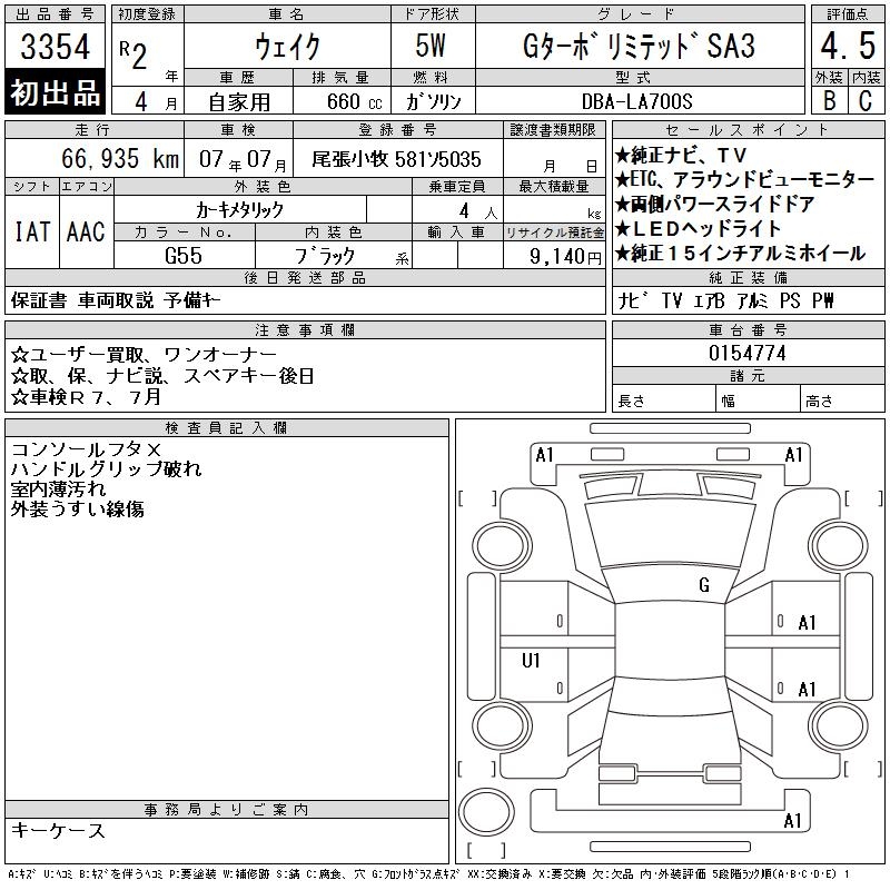 DAIHATSU WAKE - лот 3354