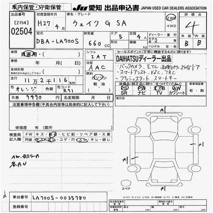DAIHATSU WAKE - лот 2504
