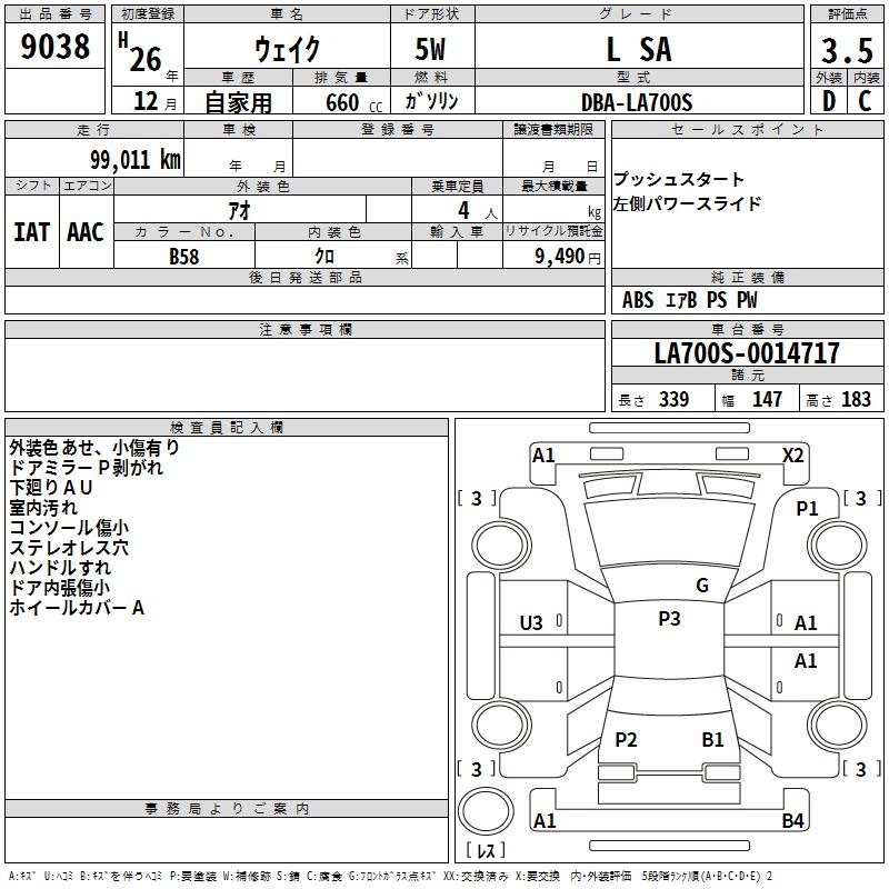 DAIHATSU WAKE - лот 9038