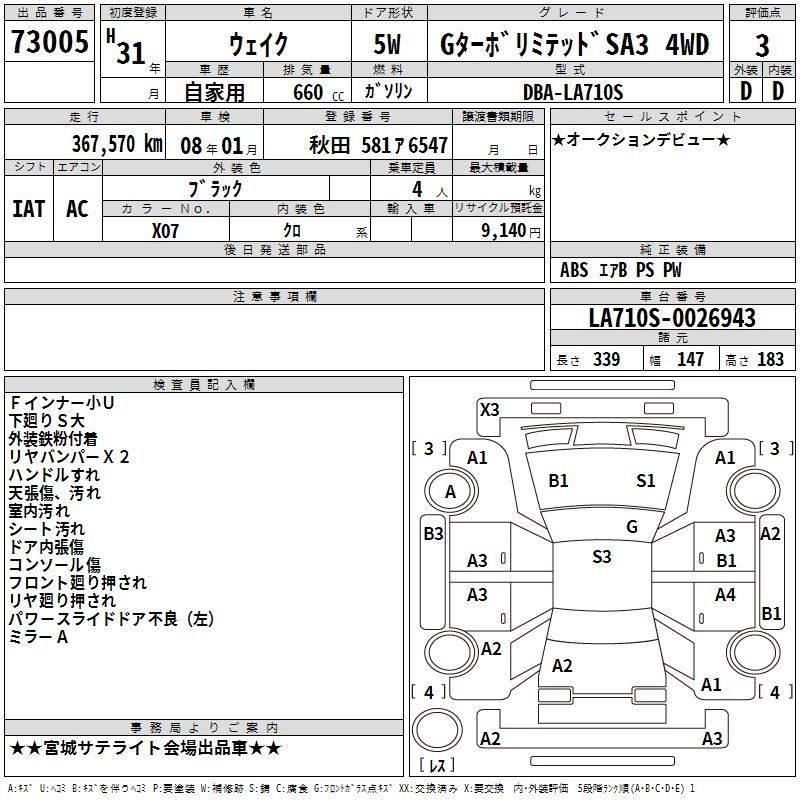 DAIHATSU WAKE - лот 73005