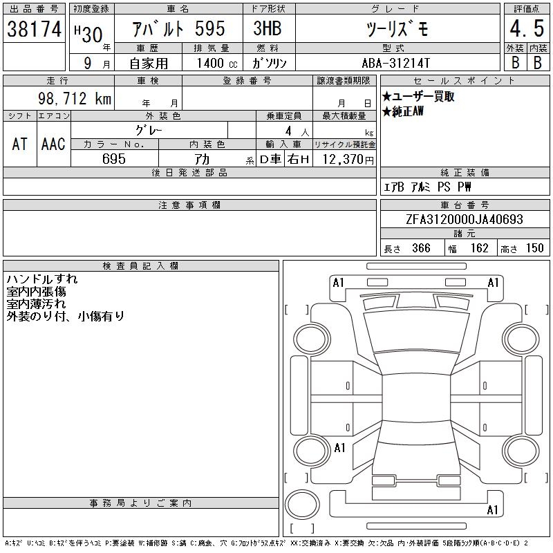 Все аукционы FIAT ABARTH 595