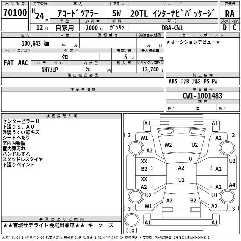 HONDA ACCORD TOURER - лот 70100