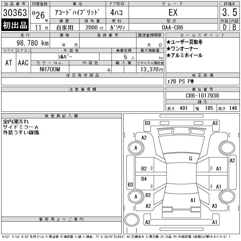 HONDA ACCORD HYBRID EX - лот 30363