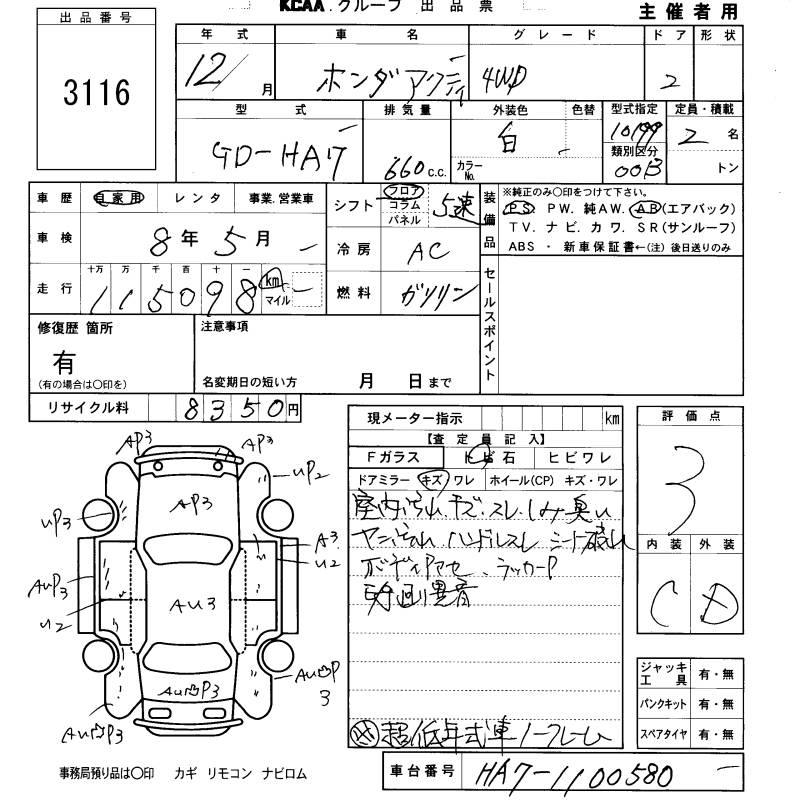 HONDA ACTY TRUCK - лот 3116