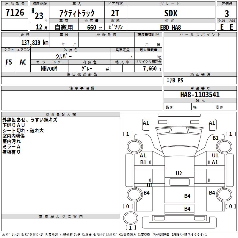 HONDA ACTY TRUCK SDX - лот 7126