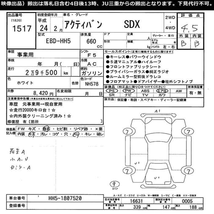 Все аукционы HONDA ACTY VAN