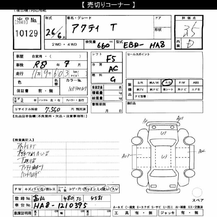 HONDA ACTY - лот 10129