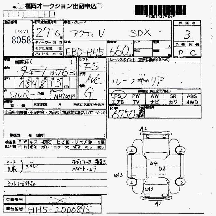 HONDA ACTY - лот 8058