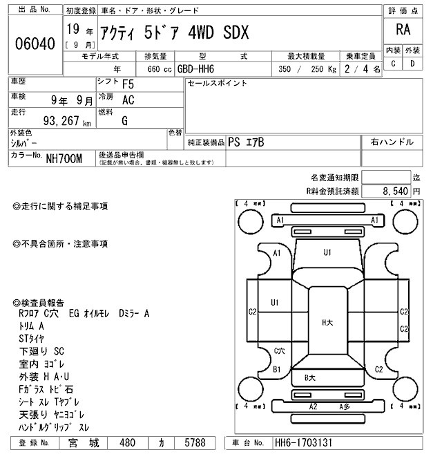 HONDA ACTY - лот 6040
