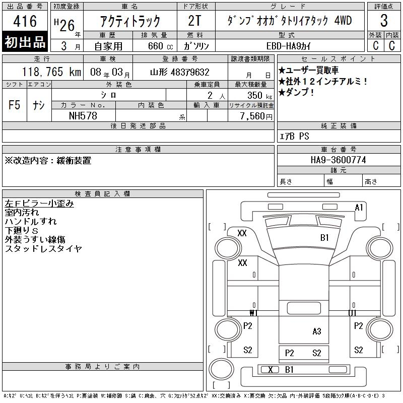 HONDA ACTY TRUCK - лот 416