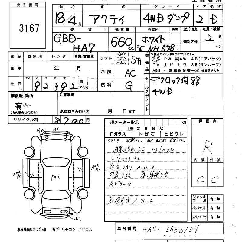HONDA ACTY TRUCK - лот 3167