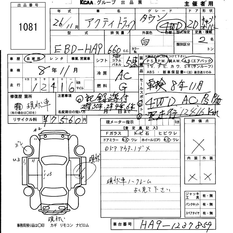 HONDA ACTY TRUCK - лот 1081