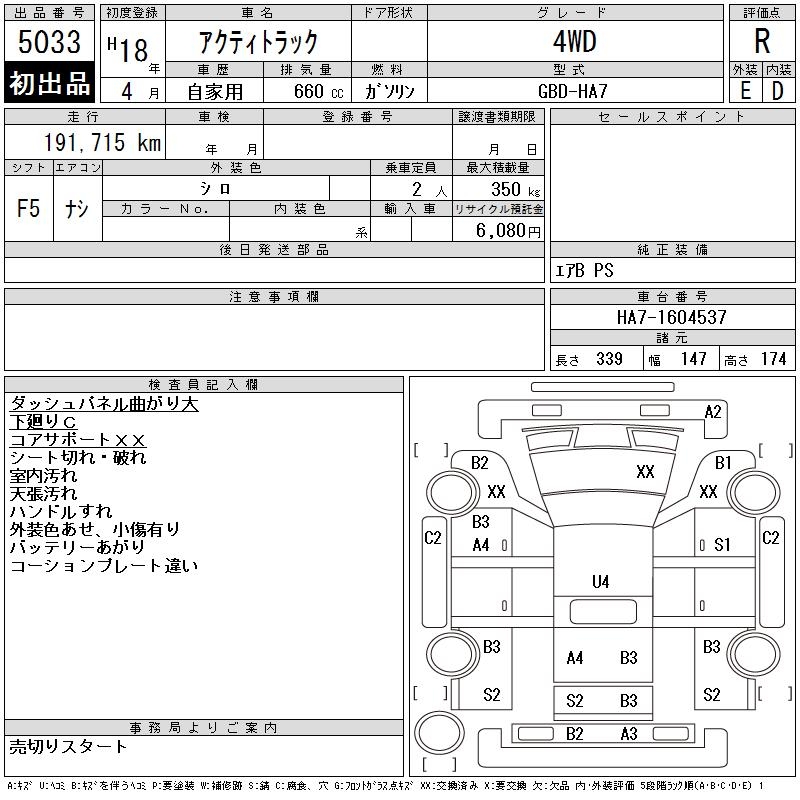HONDA ACTY TRUCK - лот 5033
