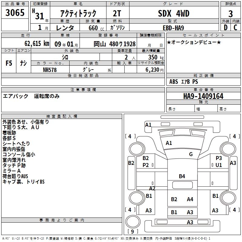 HONDA ACTY TRUCK - лот 3065